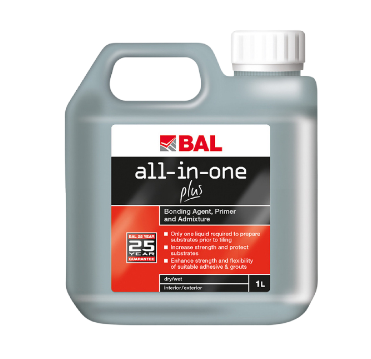 Multi-purpose primer, admix and bonding agent – only one liquid is needed to prepare substrates and backgrounds prior to tiling or use to enhance adhesives or grouts.