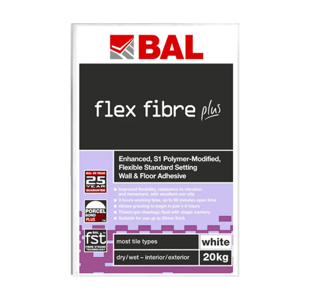 Enhanced standard setting S1 flexible gel tile adhesive with extended opne time.
