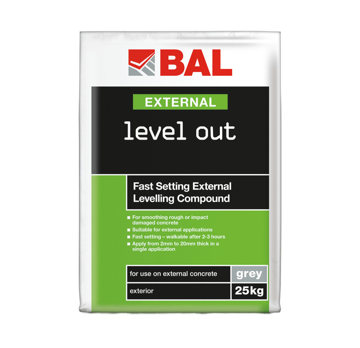 A fast-setting external levelling compound, no need to prime before applying to damaged or rough concrete bases.