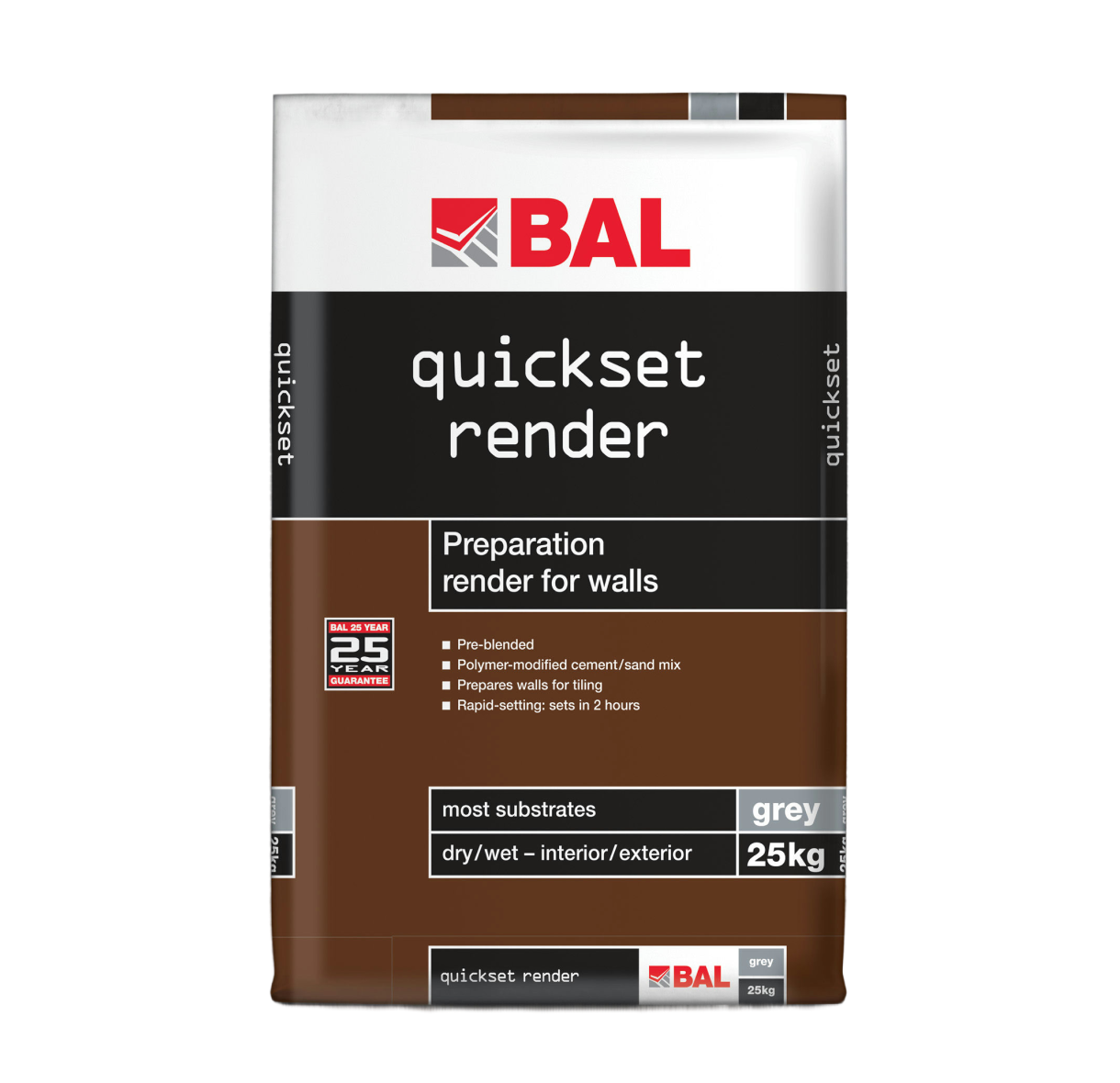Fast-setting pre-blended preparation render for walls prior to tiling.